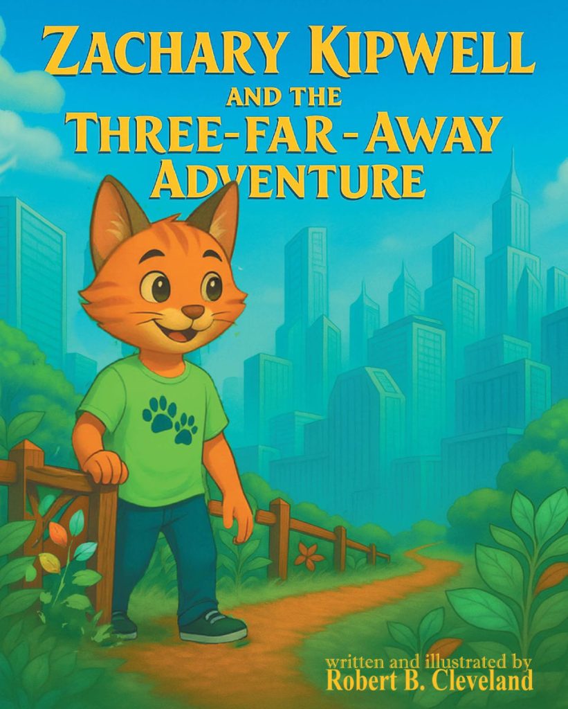 Young orange tabby cat Zachary Kipwell lives happily in the little town of 2-Far Away. Everything there comes in twos, which has always suited Zachary quite nicely. He is comfortable with his two best friends, his two snacks each day from Dad, and his two goodnight kisses from Mom. However, Zachary can’t stop thinking about